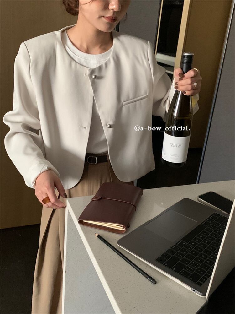 オータムトップス ラウンドネックソリッド カラーショートコート レディース ロング 秋物 Oネック ソリッドカラー 9/19 秋冬 オータム ウインター ナチュラル mi4637139090359