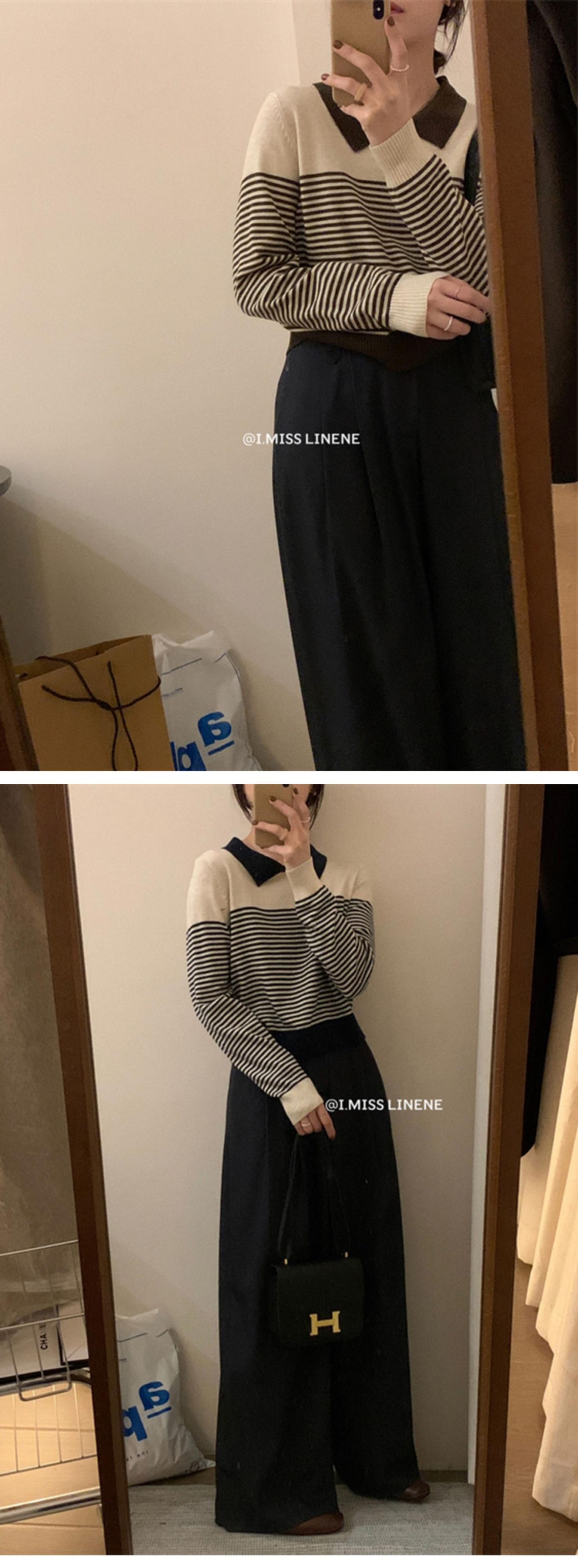 オータムスタンダードカラープルオーバー トップス ストライプセーター ロング レトロ 秋物 9/19 秋冬 オータム ウインター ナチュラル mi46352087869