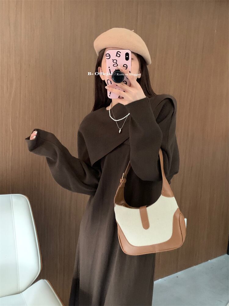 オータムスタンダード薄手カラーニット ロング レトロ 秋物 9/19 秋冬 オータム ウインター ナチュラル mi4647549504306