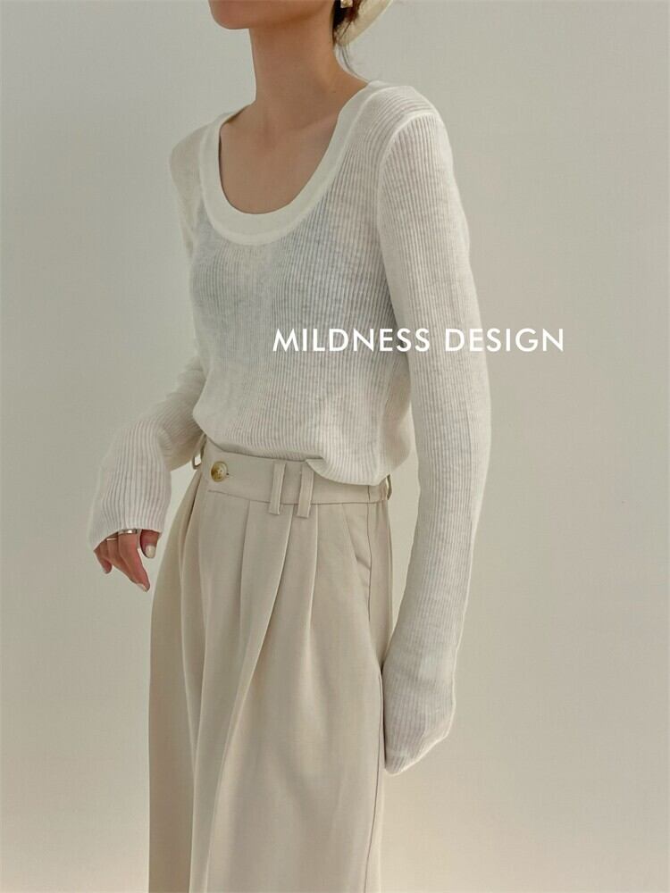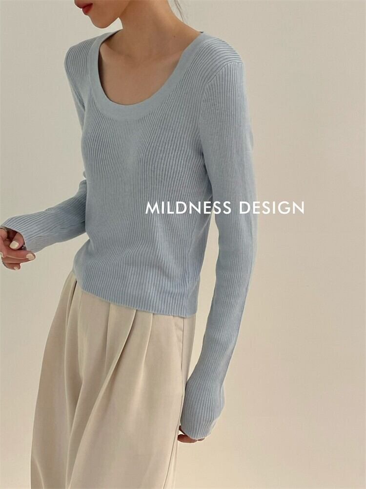 オータムスリムプルオーバー トップス ソリッド カラーストライプセーター ロング 秋物 ソリッドカラー 9/19 秋冬 オータム ウインター ナチュラル mi4678624801748