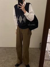 オータムスタンダードラウンドネックプルオーバー ノースリーブトップス レトロ 秋物 Oネック 9/19 秋冬 オータム ウインター ナチュラル mi4630496293458
