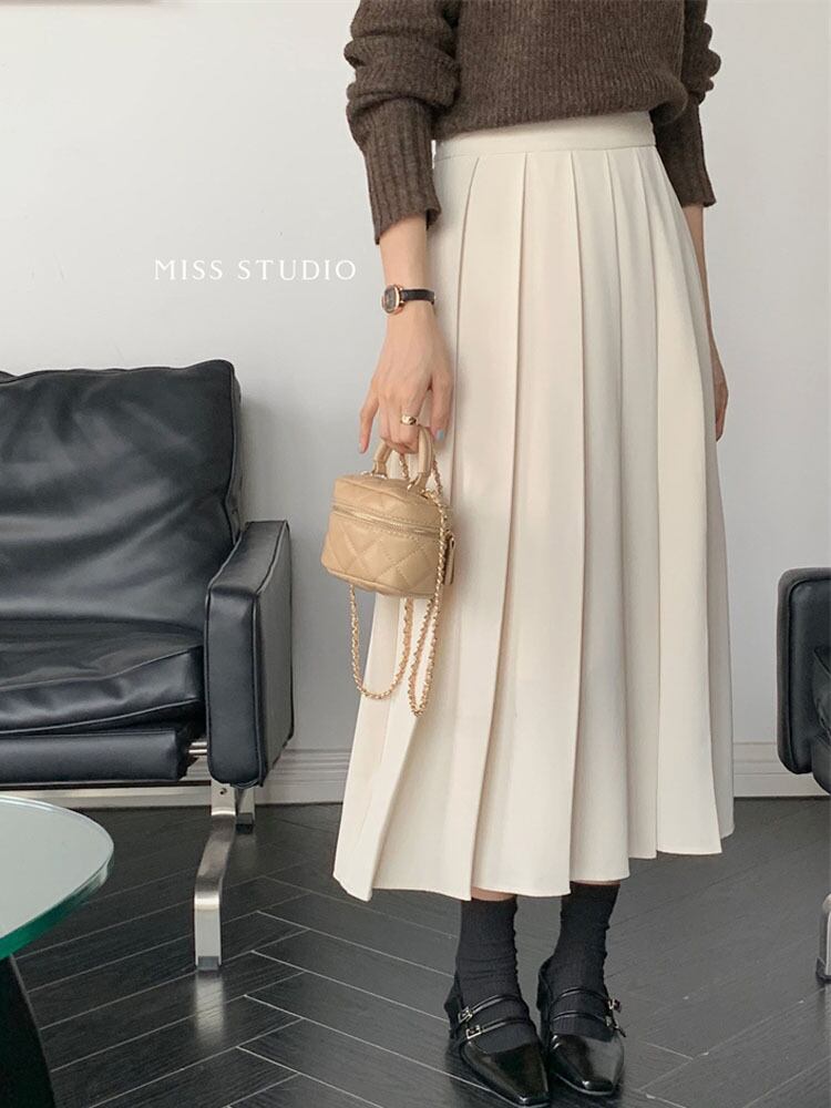 オータムハイウェストウェストAラインミディスカート プリーツカラーレディース 秋物 9/19 秋冬 オータム ウインター ナチュラル mi4673712683447
