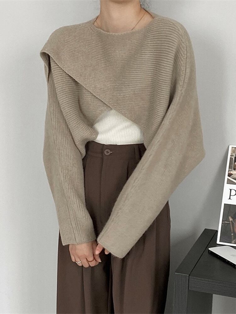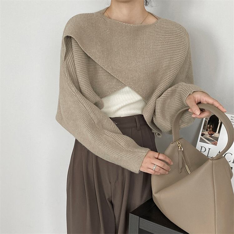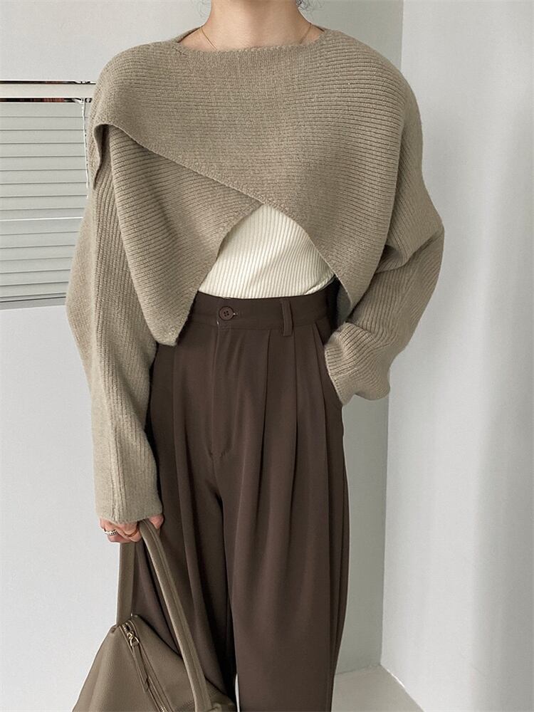 オータムルーズラウンドネックプルオーバー ニットショートセーター 秋物 Oネック 9/19 秋冬 オータム ウインター ナチュラル mi465758363995