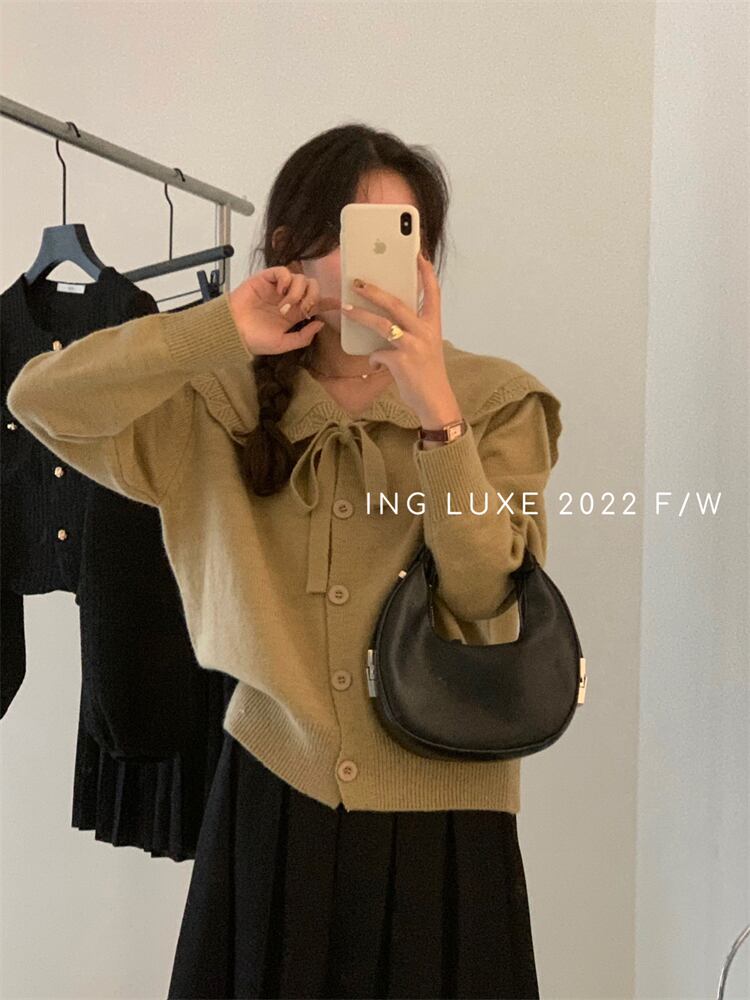 オータムルーズリボントップス カラーセーター ロング 秋物 9/19 秋冬 オータム ウインター ナチュラル mi4694842660440