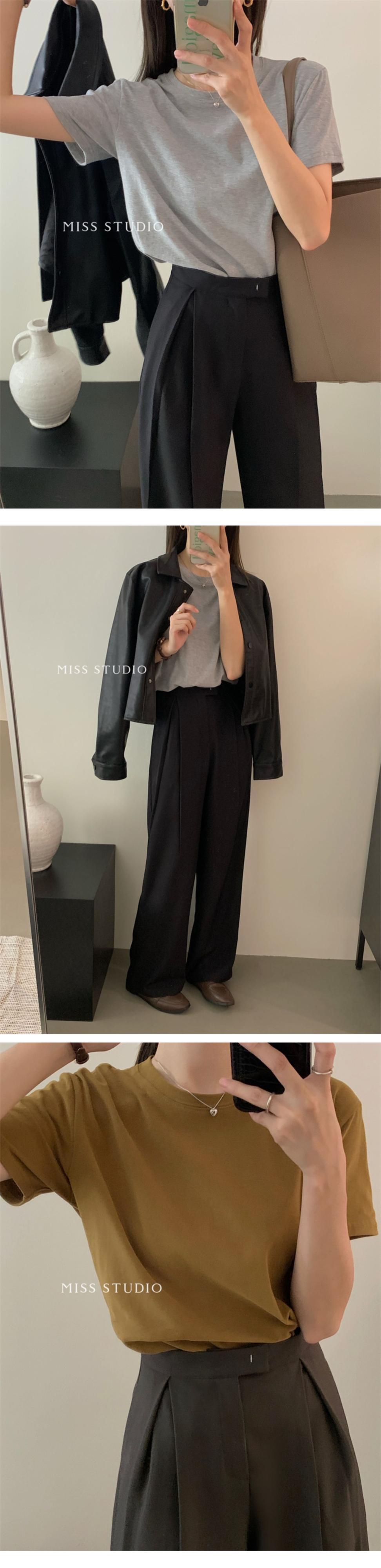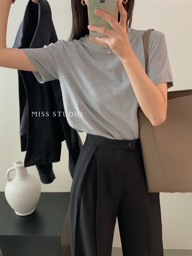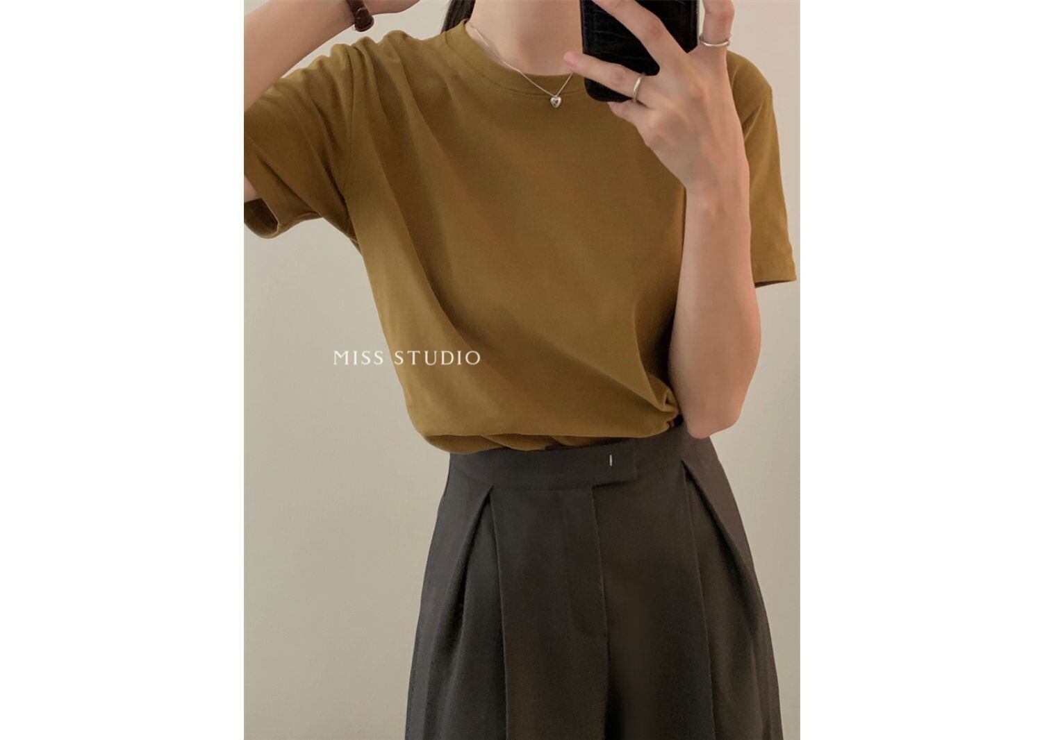 オータムスタイルラウンドネックトップス バックカラーボタンTシャツ 秋物 Oネック 9/19 秋冬 オータム ウインター ナチュラル mi4671297185963