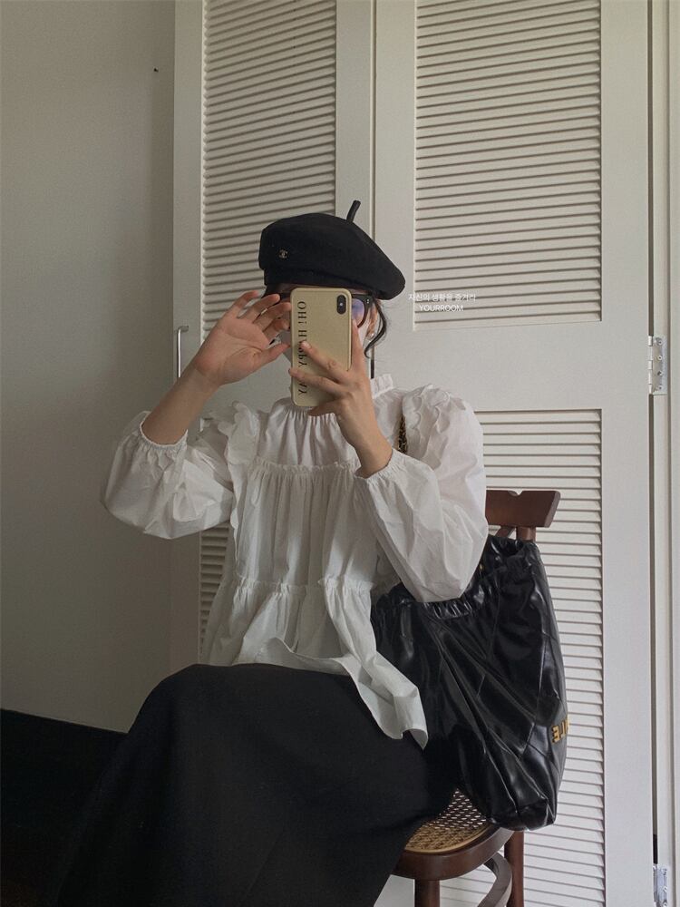 オータムラウンドネックホワイトシャツ ロング 秋物 Oネック 9/19 秋冬 オータム ウインター ナチュラル mi4679602198669