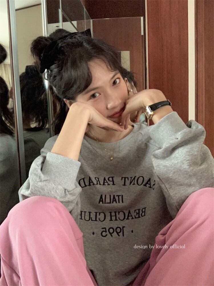オータムスタイルラウンドネックプルオーバー トップス カジュアルカラーセーター レッド 刺繍 秋物 Oネック かわいい 9/19 秋冬 オータム ウインター ナチュラル mi4671024625354