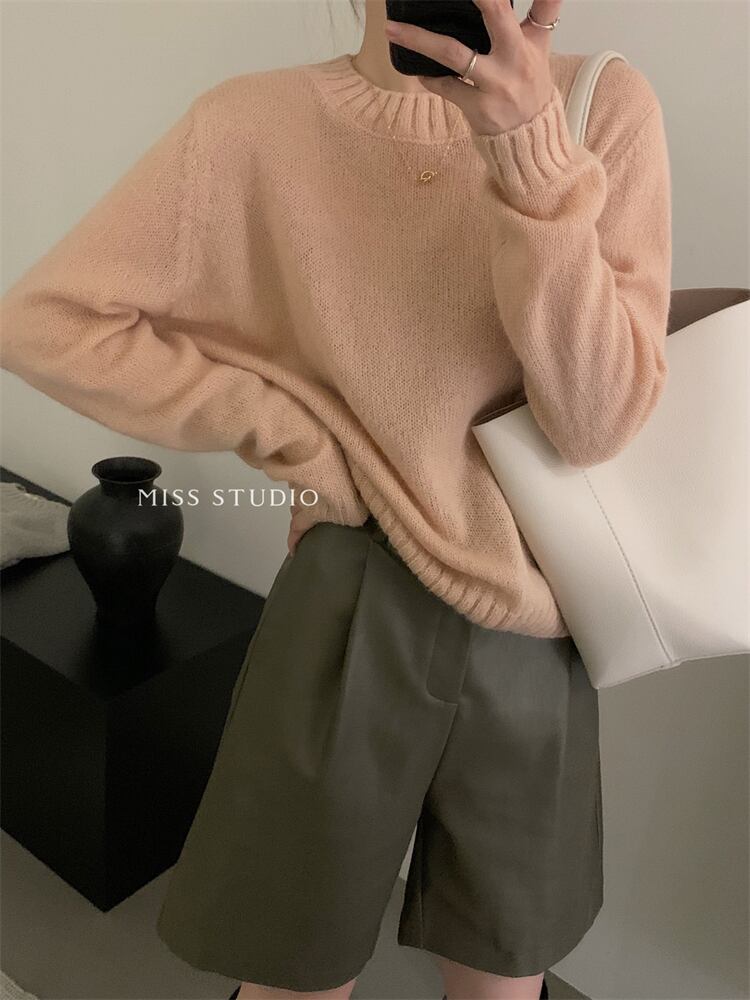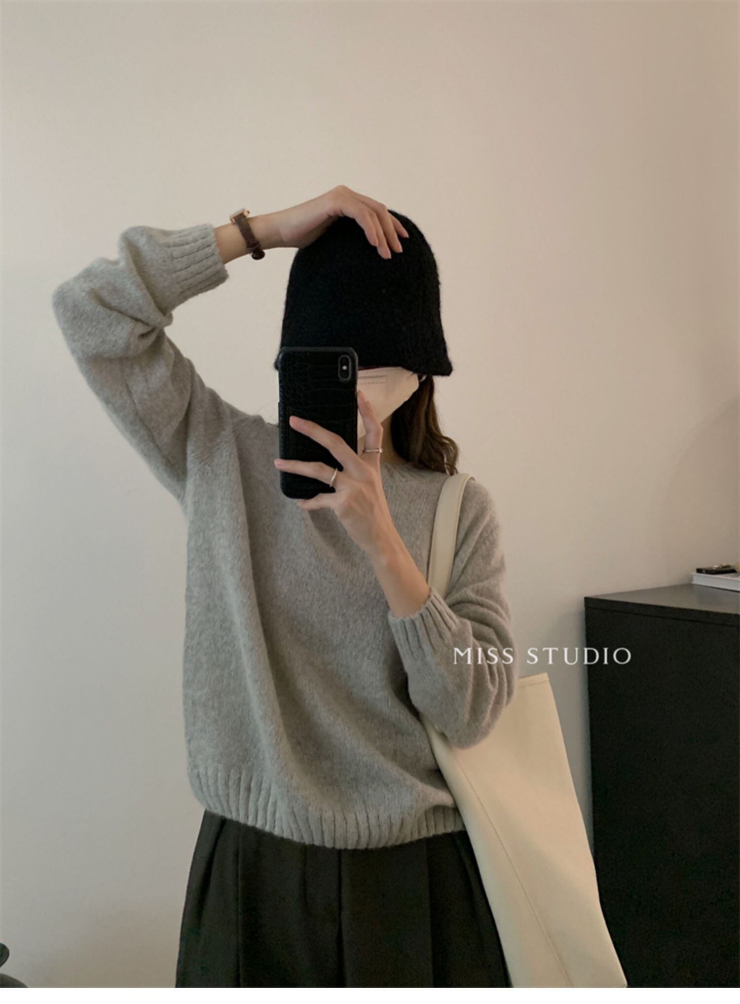 オータムルーズラウンドネックソリッド カラープルオーバー トップス ストライプセーター 秋物 Oネック ソリッドカラー 9/19 秋冬 オータム ウインター ナチュラル mi4650610022711