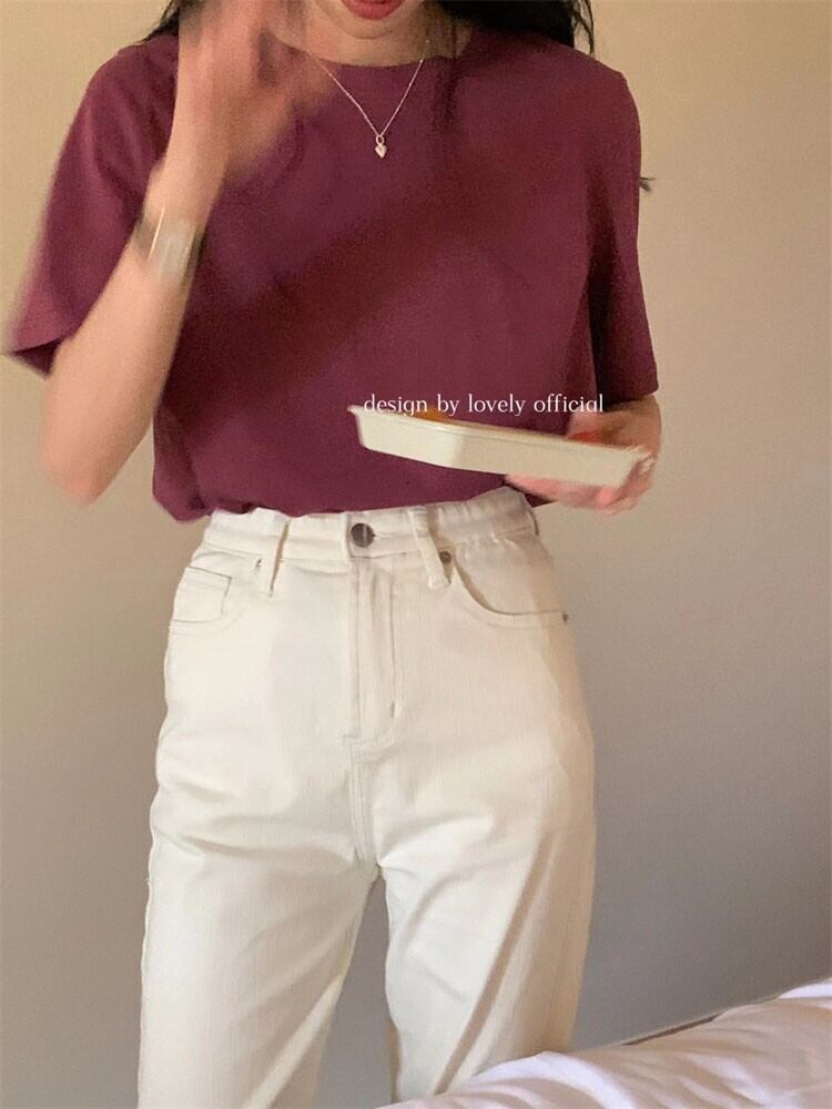 オータムラウンドネックベーシックTシャツ ソリッド カラートップス 秋物 Oネック かわいい ソリッドカラー 9/19 秋冬 オータム ウインター ナチュラル mi4613449251371
