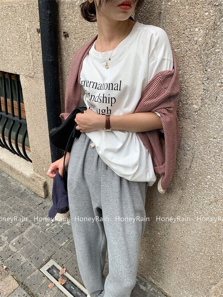 オータムルーズラウンドネックプルオーバー トップス ファープリント柄Tシャツ レディース 秋物 Oネック 9/19 秋冬 オータム ウインター ナチュラル mi4634800164575