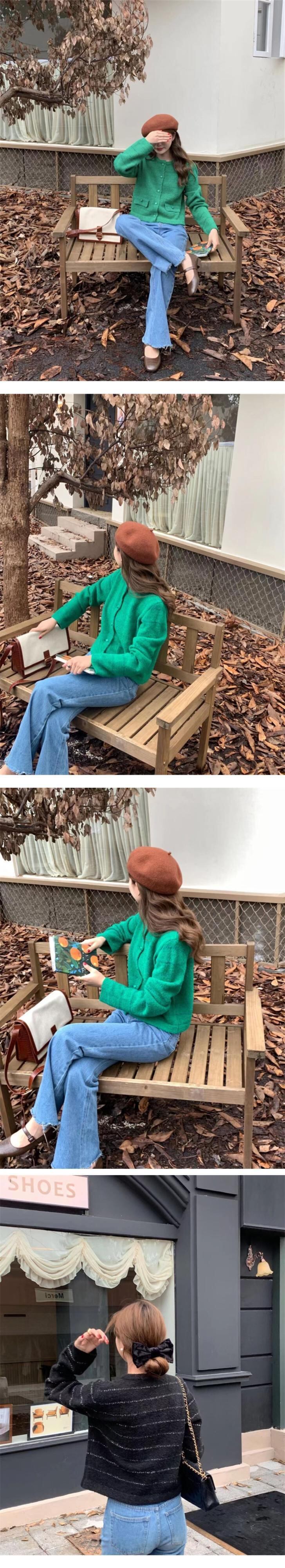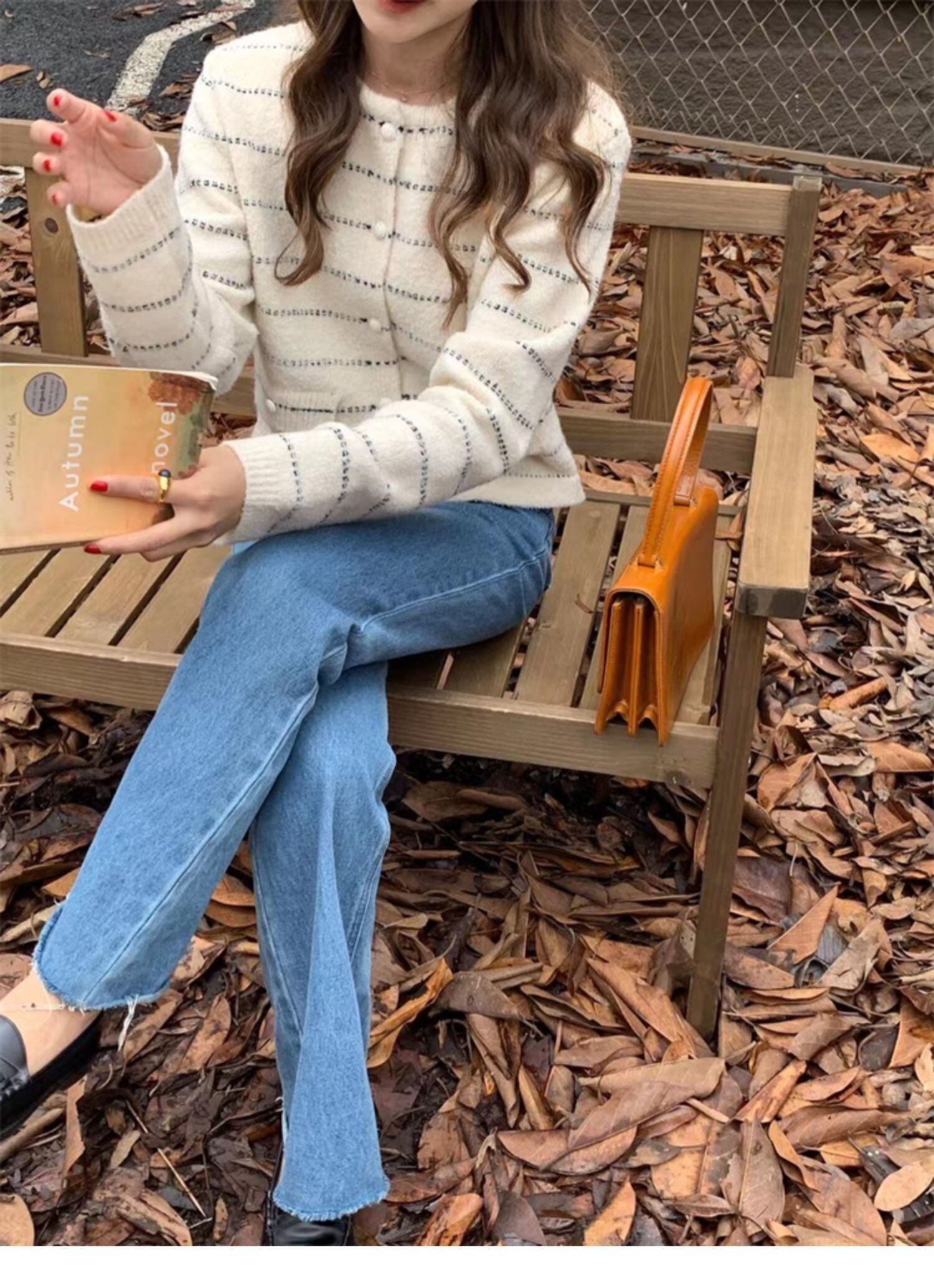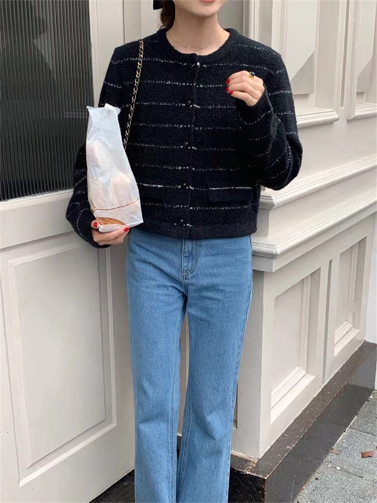 オータムラウンドネックダブルポケットストライプニットカーディガン 秋物 Oネック 9/19 秋冬 オータム ウインター ナチュラル mi4637088325342