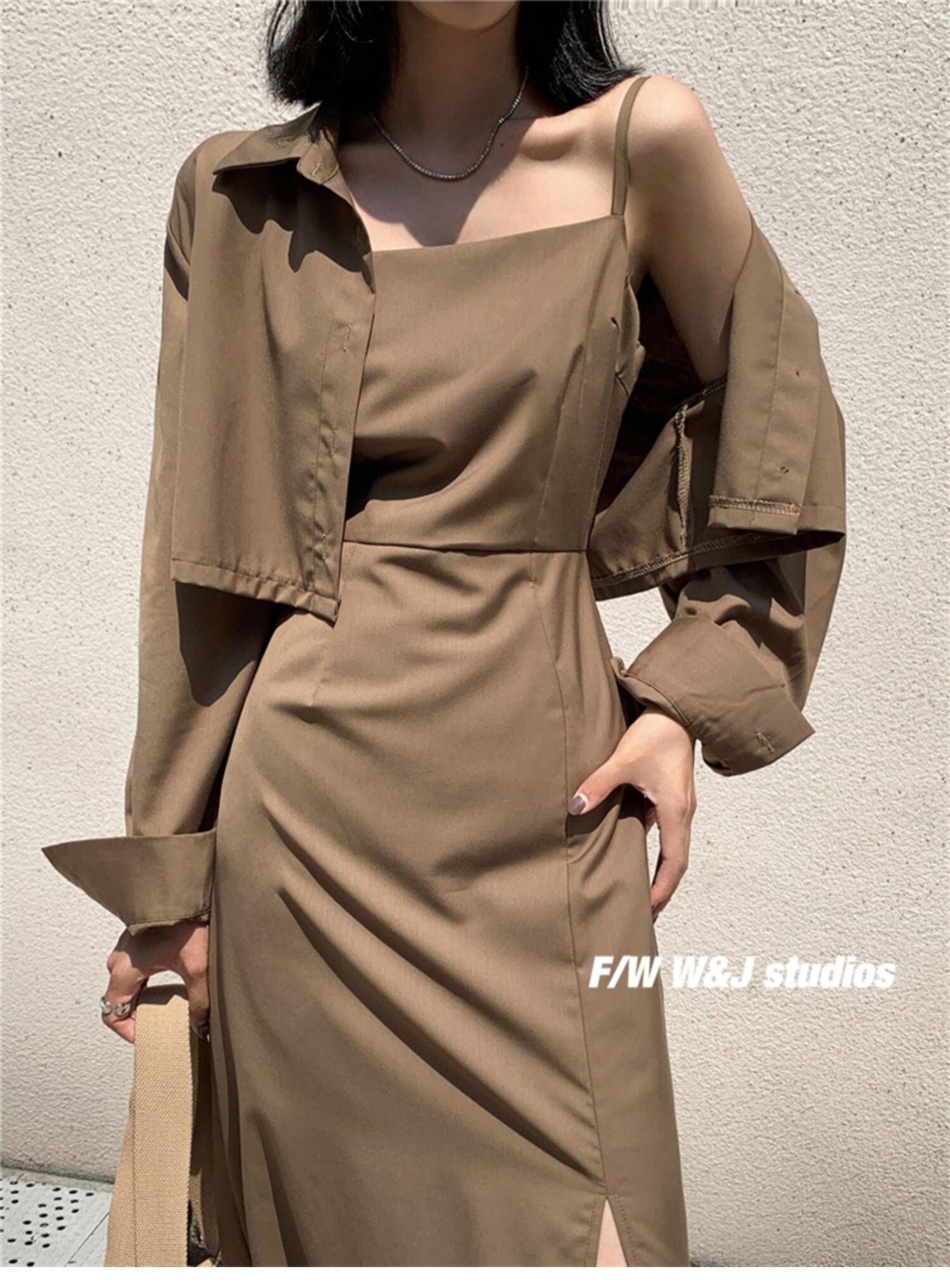 オータムカラージャケット スリムスリットドレス ロング エレガント 秋物 9/19 秋冬 オータム ウインター ナチュラル mi4689349364524