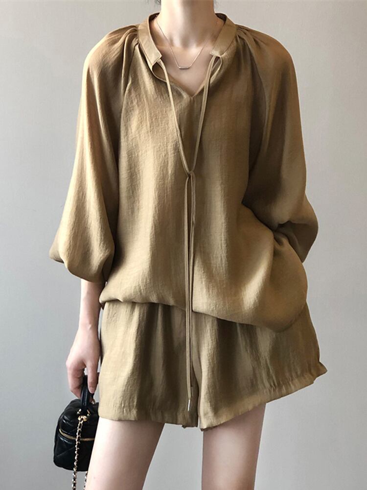 サマールーズソリッド カラーシャツ ウェストストレッチショーツ エラスティック 伸縮 夏物 ブルマー ソリッドカラー 9/19 秋冬 オータム ウインター ナチュラル mi464144112586