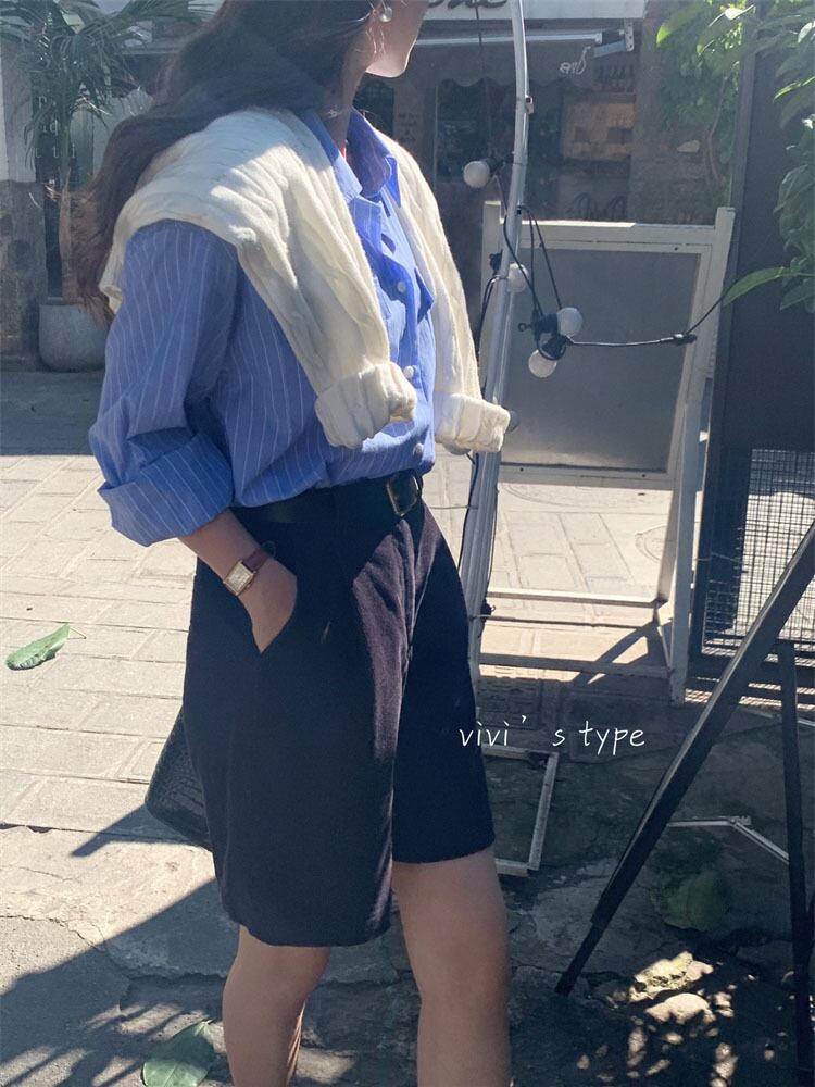 オータムルーズトップス ストライプシャツ ロング 秋物 9/19 秋冬 オータム ウインター ナチュラル mi4628827391635
