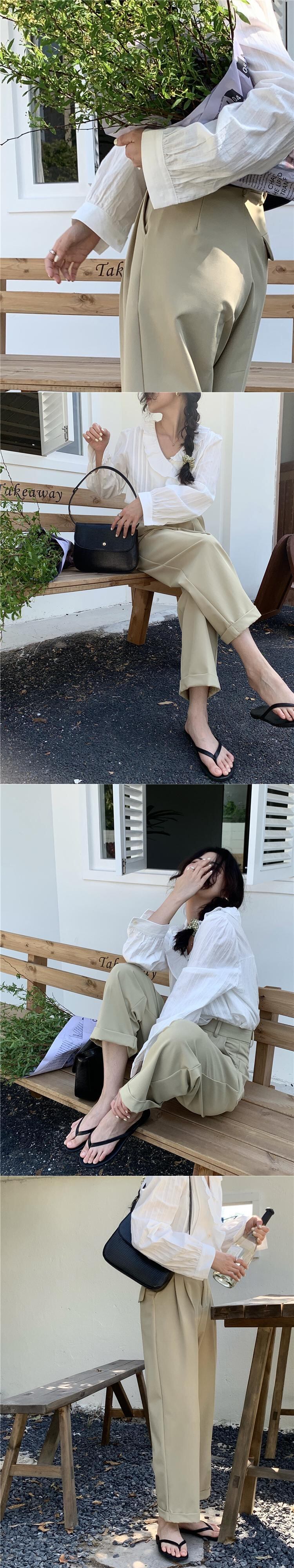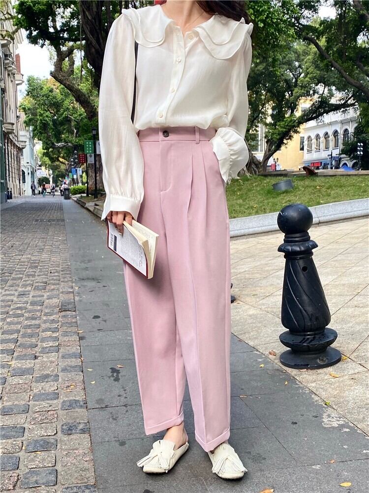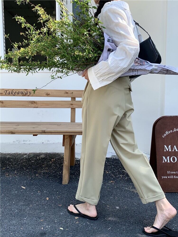 スプリングハイウェストパンツ ベーシックソリッド カラーレディース 春物 ソリッドカラー 9/19 秋冬 オータム ウインター ナチュラル mi4659052981169