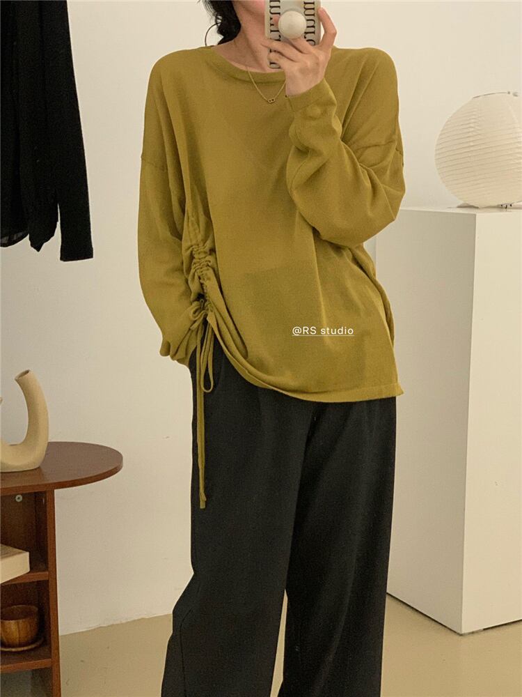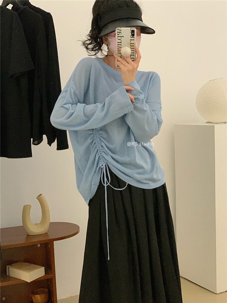 サマールーズラウンドネック薄手ギャザーシャツ ロング 夏物 Oネック 9/19 秋冬 オータム ウインター ナチュラル mi4636510605012