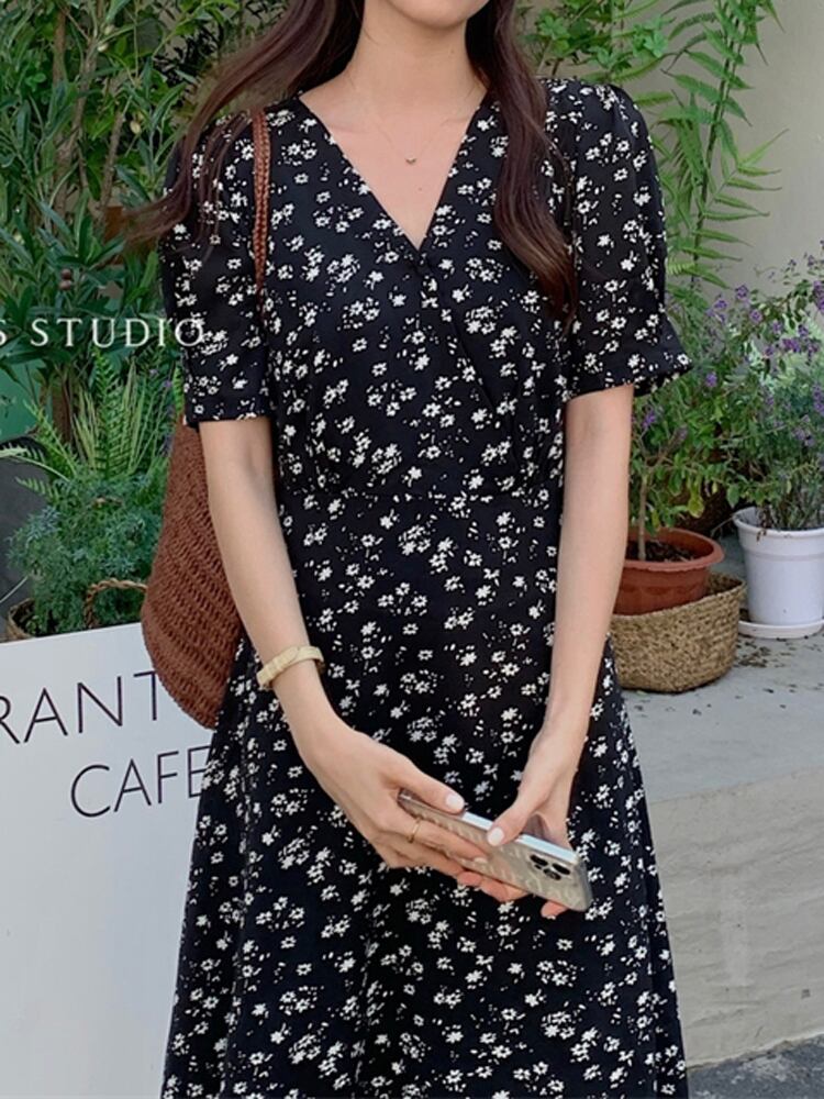 サマースタイルVネックハイウェストウェストドレス フローラルレディース 夏物 花柄 9/19 秋冬 オータム ウインター ナチュラル mi4689775128417