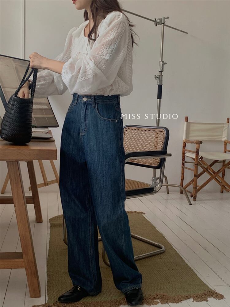 オータムスタンダードハイウェストパンツ ルーズブルージーンズ レトロ 秋物 9/19 秋冬 オータム ウインター ナチュラル mi4666676105925