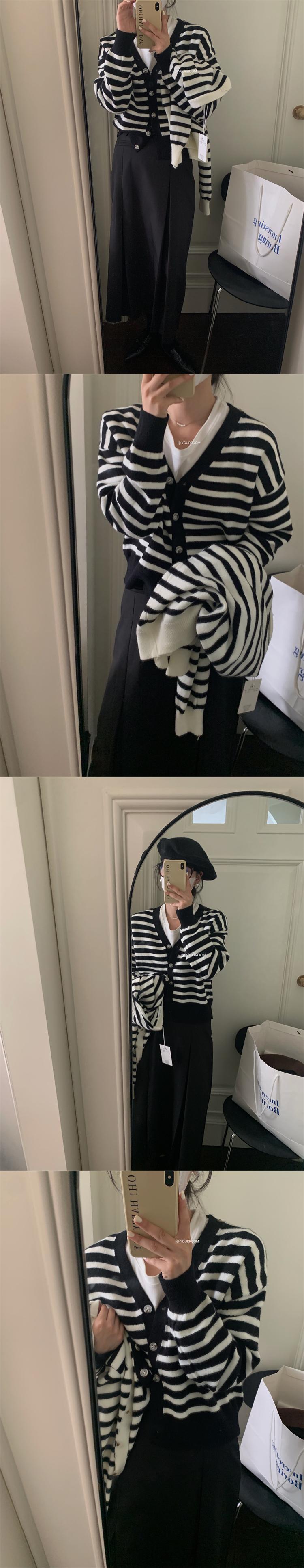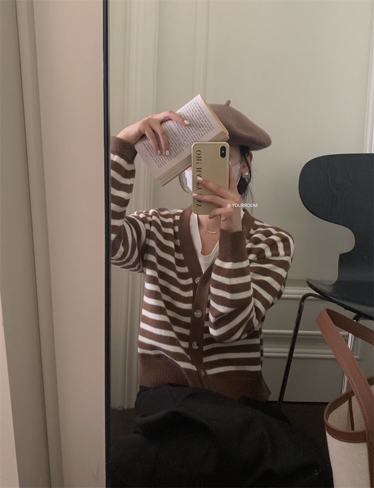 オータムスタンダードスリムVネックストライプニットカーディガン レトロ 秋物 9/19 秋冬 オータム ウインター ナチュラル mi464901799218