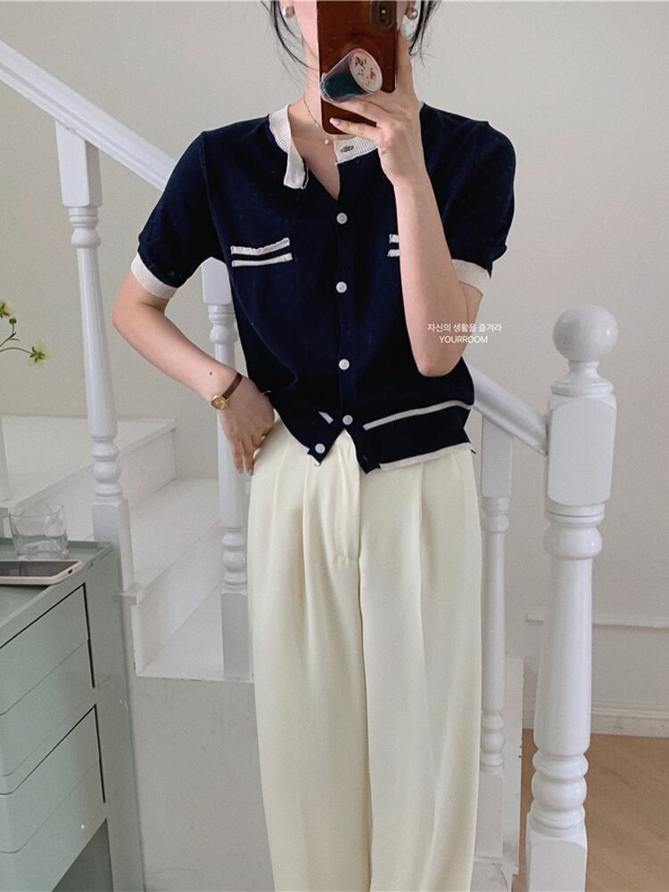サマーカラーラウンドネックニットカーディガン 夏物 Oネック 9/19 秋冬 オータム ウインター ナチュラル mi4634824172213