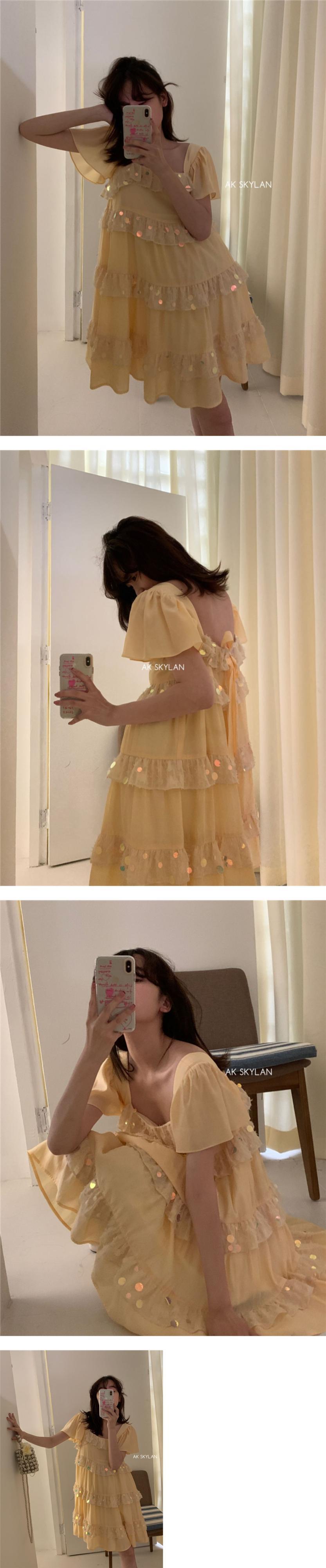 サマールーズカラーソリッド ショートスパンコールドレス 夏物 ソリッドカラー 9/19 秋冬 オータム ウインター ナチュラル mi462587534319