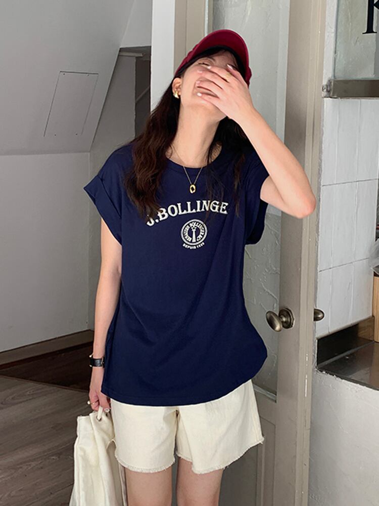 サマールーズプルオーバー トップス プリントラウンドネックTシャツ 夏物 Oネック 9/19 秋冬 オータム ウインター ナチュラル mi4672171843150