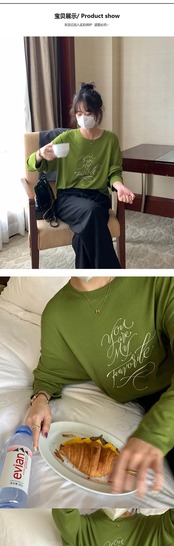 オータムルーズラウンドネックトップス プリントTシャツ ロング 秋物 Oネック 9/19 秋冬 オータム ウインター ナチュラル mi4686717117064