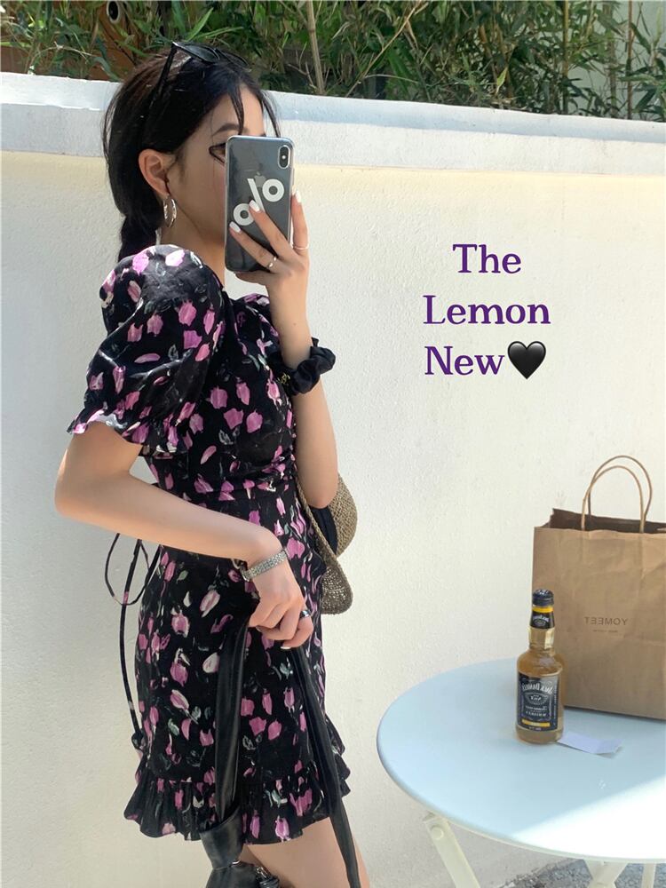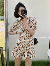 スタンダードフローラルスカート Vネックドレス レトロ 花柄 9/19 秋冬 オータム ウインター ナチュラル mi4648182991136