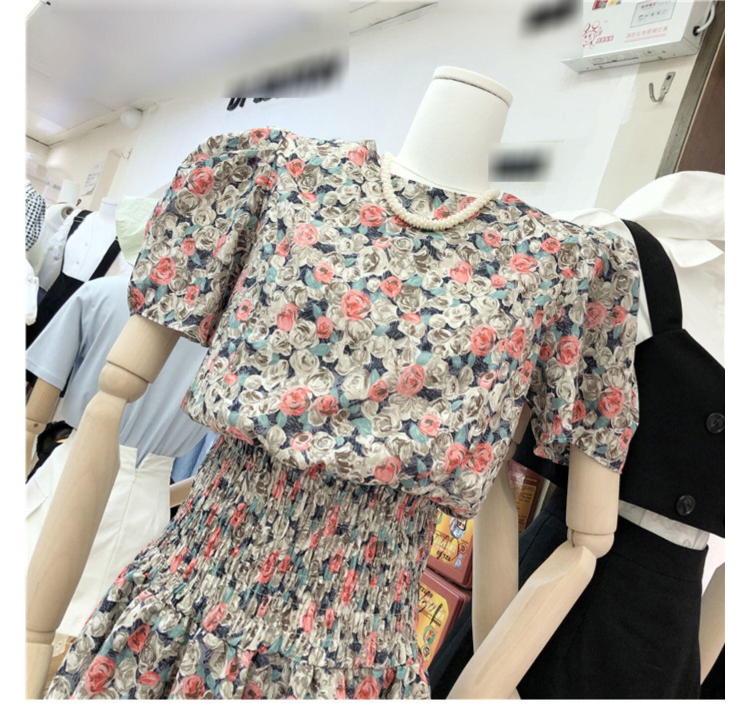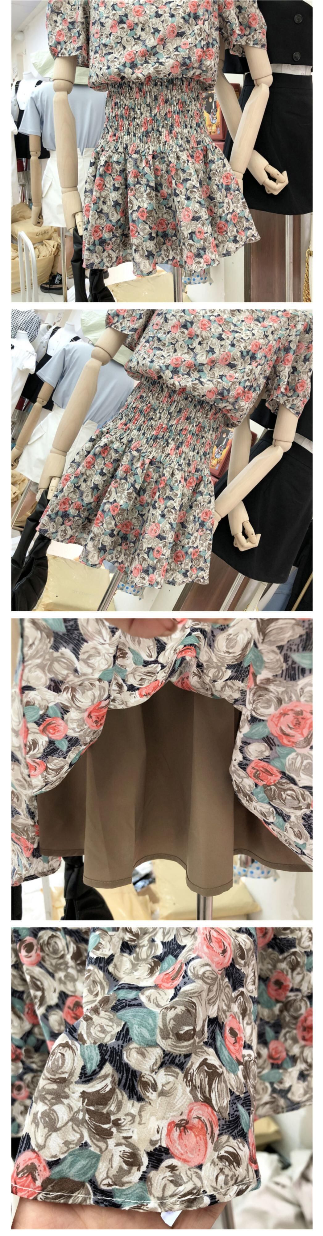 ラウンドネックウェストショートスカート レッドフローラルドレス 花柄 Oネック 9/19 秋冬 オータム ウインター ナチュラル mi4661637295870