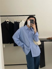 オータムルーズトップス ブルーシャツ ロング コットン 秋物 9/19 秋冬 オータム ウインター ナチュラル mi4642634125116