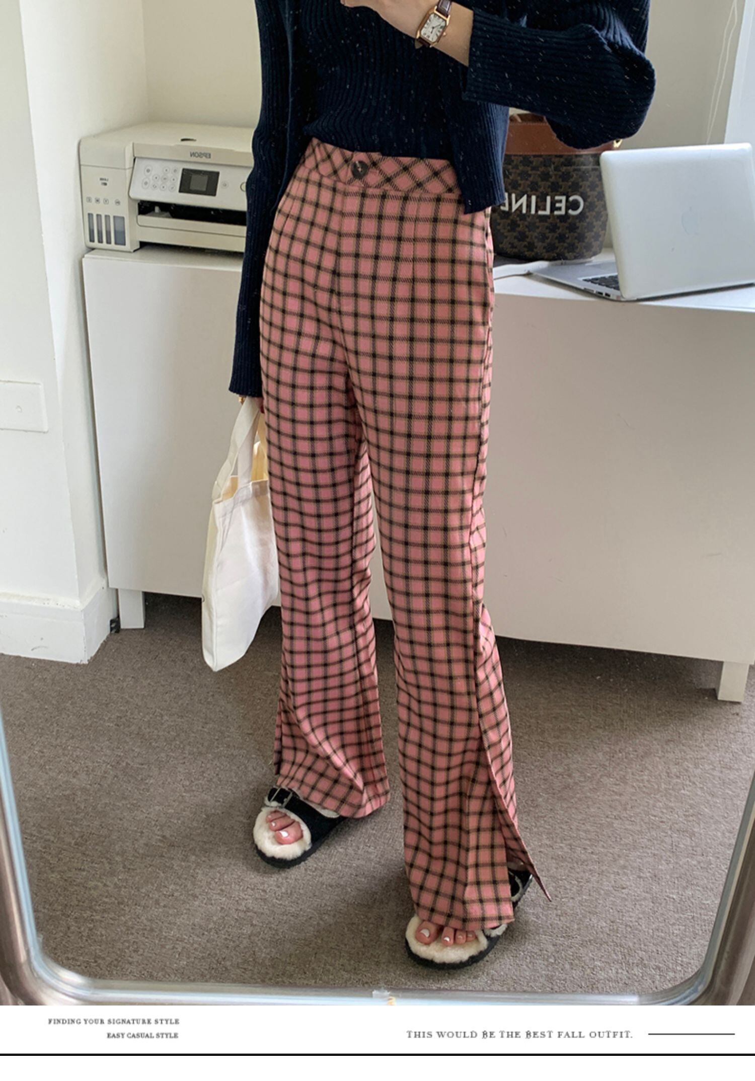 オータムハイウェストスリムパンツ 格子柄 ピンク 秋物 9/19 秋冬 オータム ウインター ナチュラル mi4610996146233