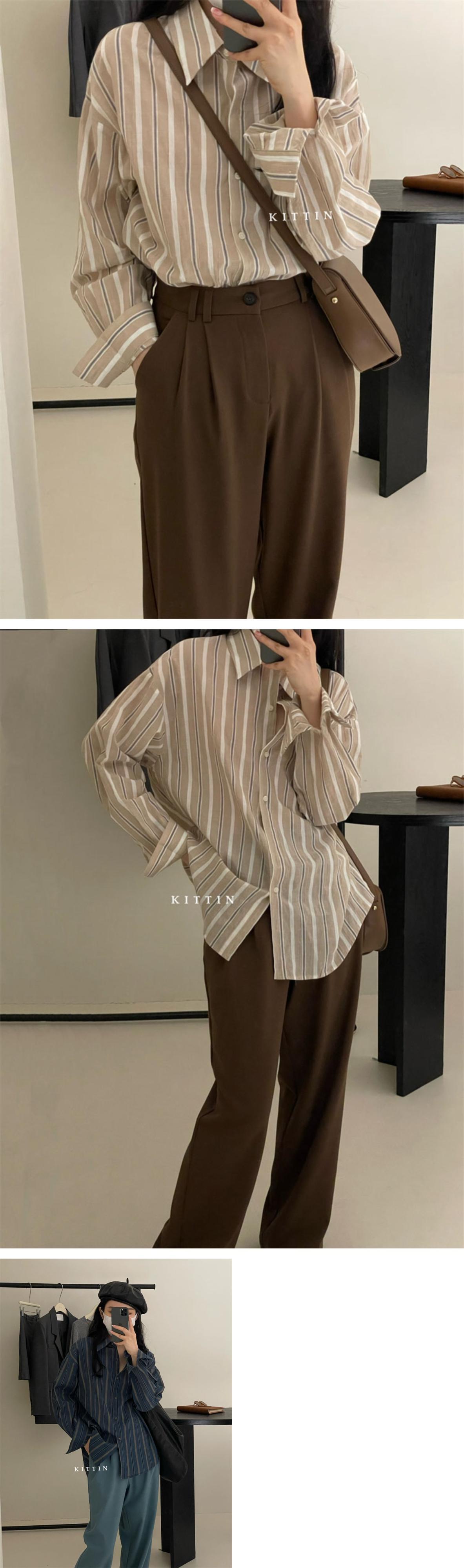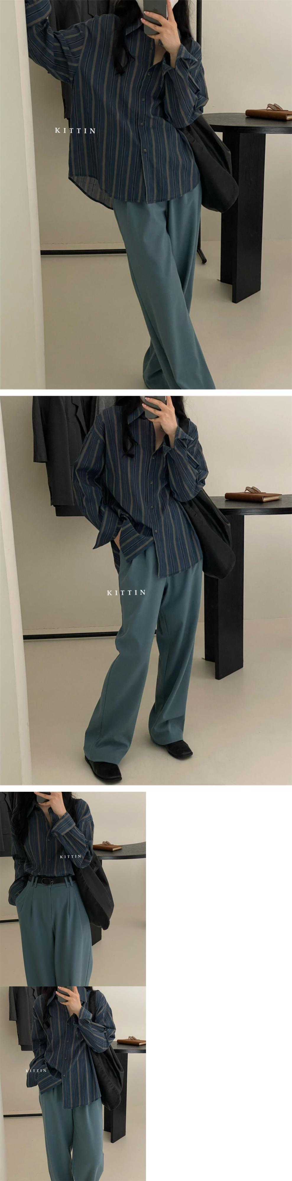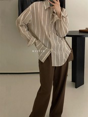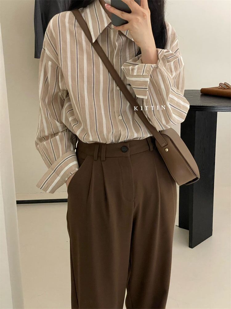 オータムルーズスタイルトップス ストライプシャツ ロング 秋物 9/19 秋冬 オータム ウインター ナチュラル mi4648375123044