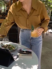 オータムルーズトップス ポケットシャツ レディース ロング 秋物 9/19 秋冬 オータム ウインター ナチュラル mi4689113941605