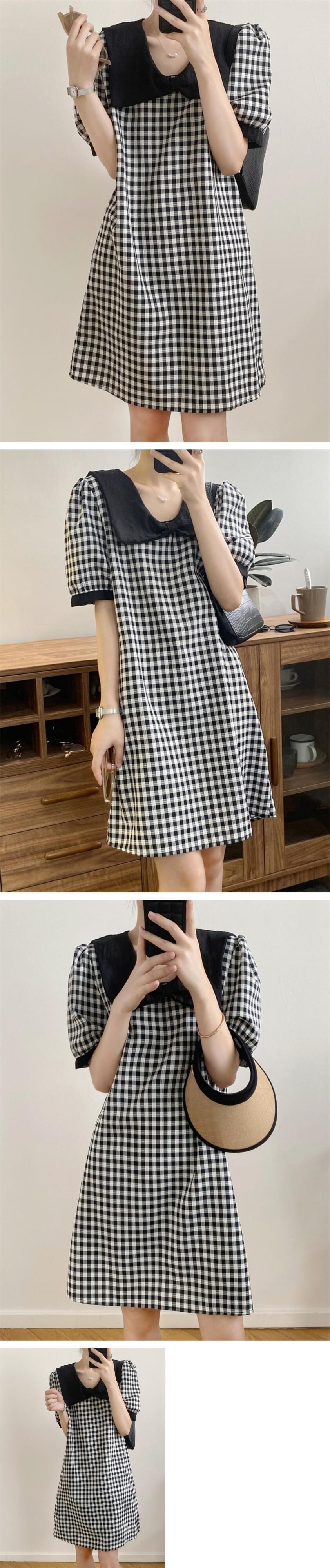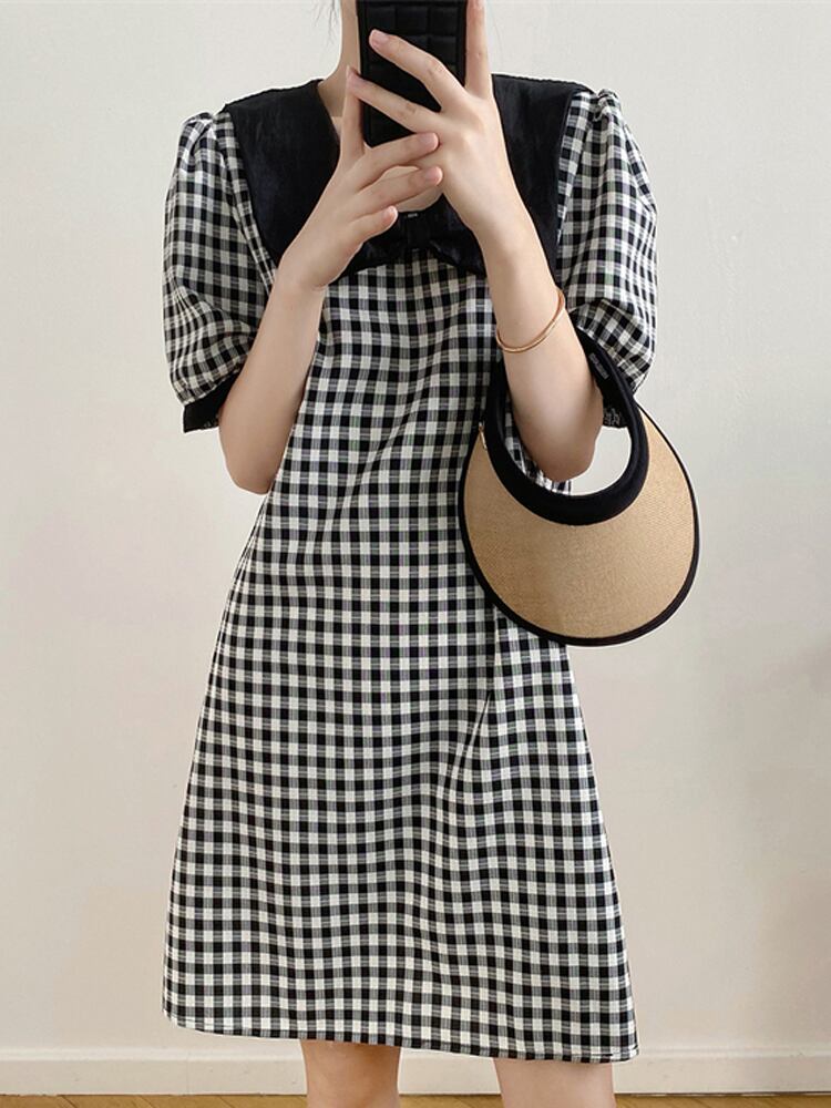 サマースタンダード格子柄カラードレス リボンスカート レトロ 夏物 9/19 秋冬 オータム ウインター ナチュラル mi4683428483074