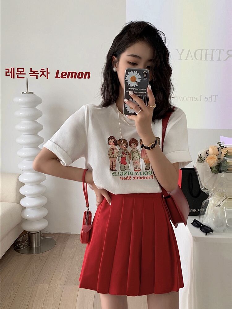 スプリングレッドショートスカート プリーツAライン 春物 9/19 秋冬 オータム ウインター ナチュラル mi4676001154998