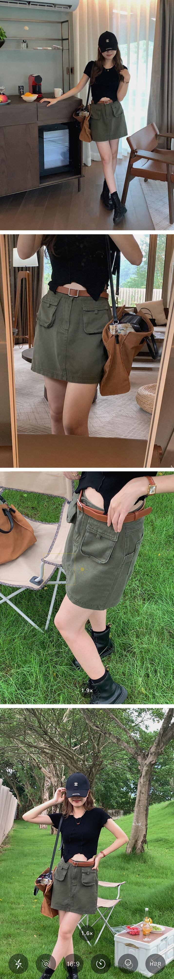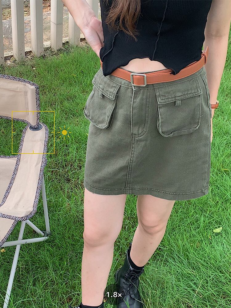 サマーグリーンレッドポケットスカート ショートレディース 夏物 9/19 秋冬 オータム ウインター ナチュラル mi4656196584974