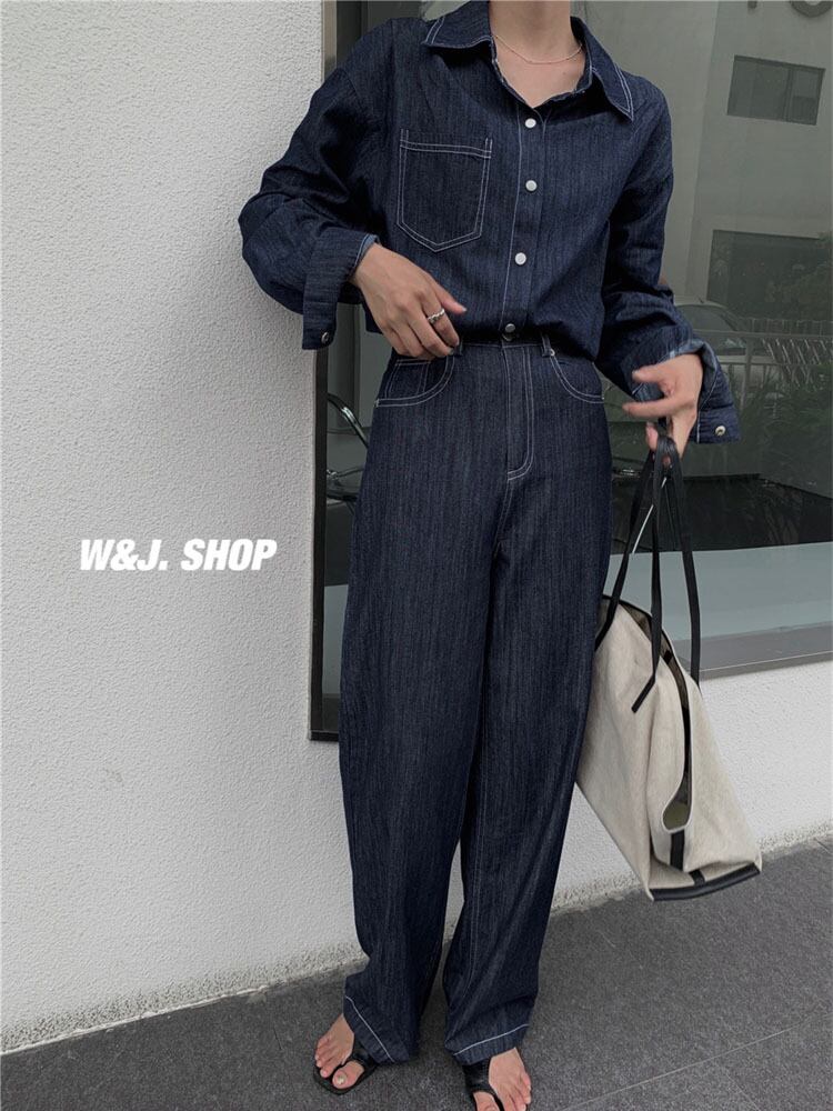 オータムルーズダークブルーシャツ レディース ロング 秋物 9/19 秋冬 オータム ウインター ナチュラル mi4629709603172