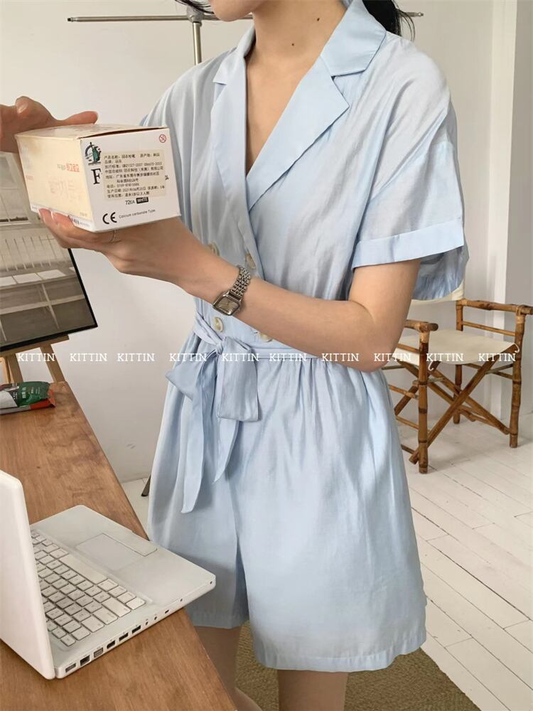 ダブルブレストハイウェストウェストストラップ ワンピースショーツ ブルマー 9/19 秋冬 オータム ウインター ナチュラル mi4683153001235