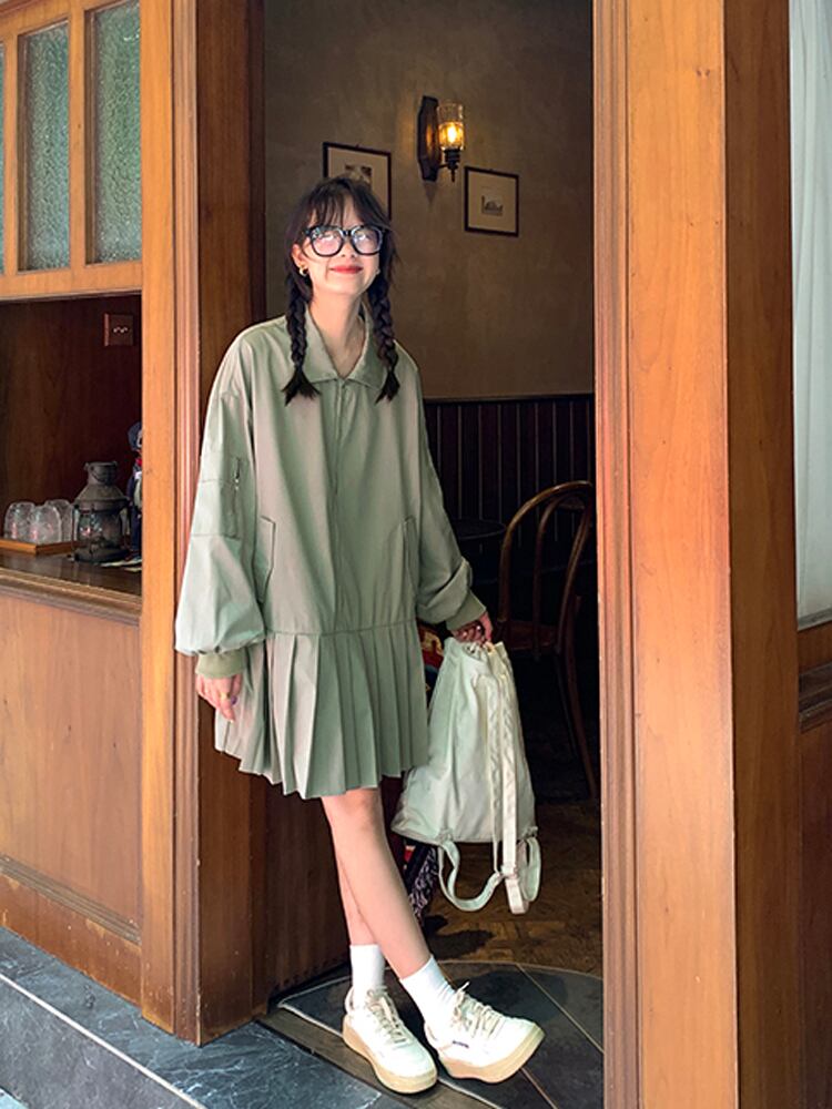 オータムレッドルーズジッパーミディスカート プリーツカジュアルドレス 秋物 9/19 秋冬 オータム ウインター ナチュラル mi4697093363351