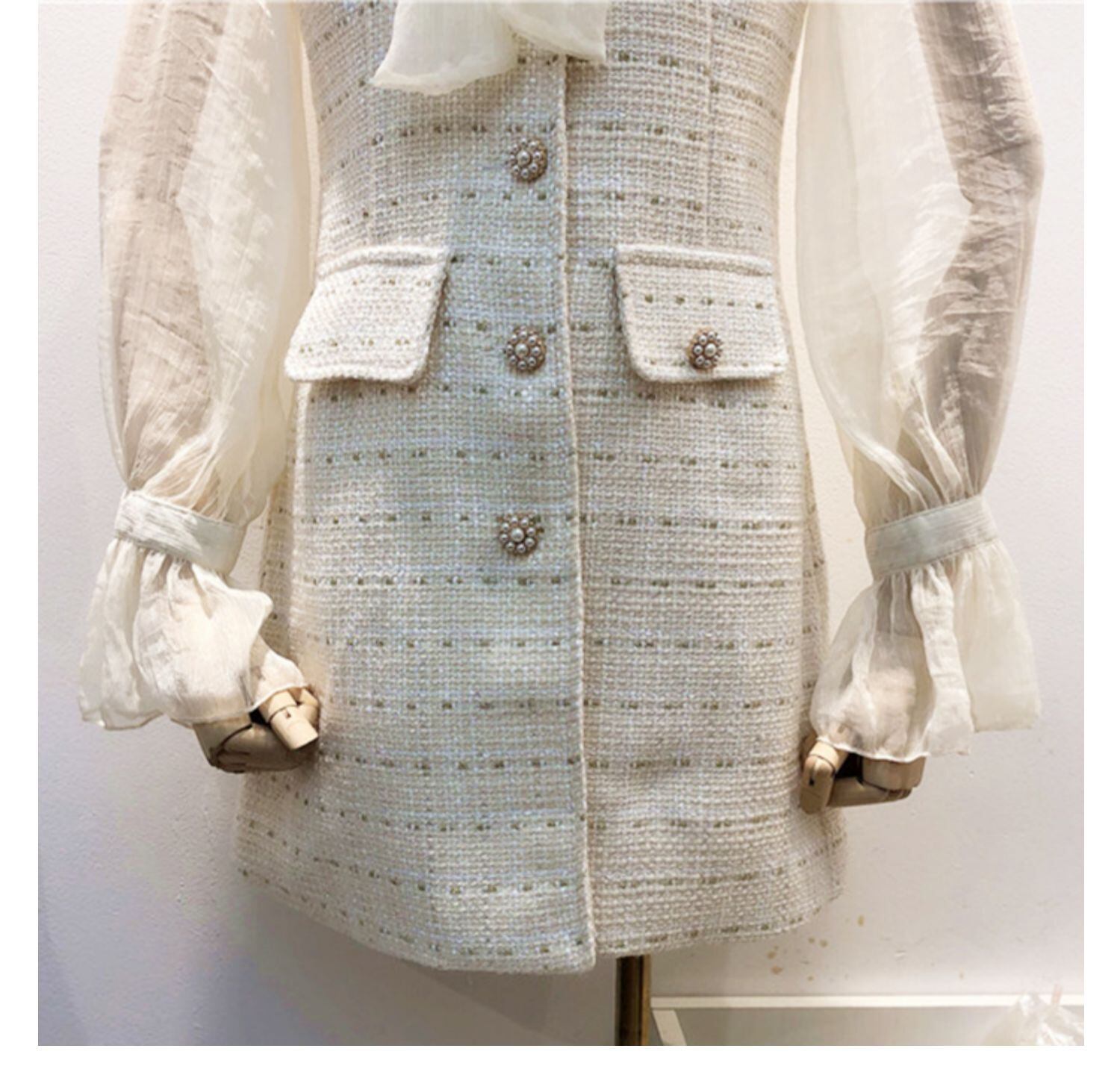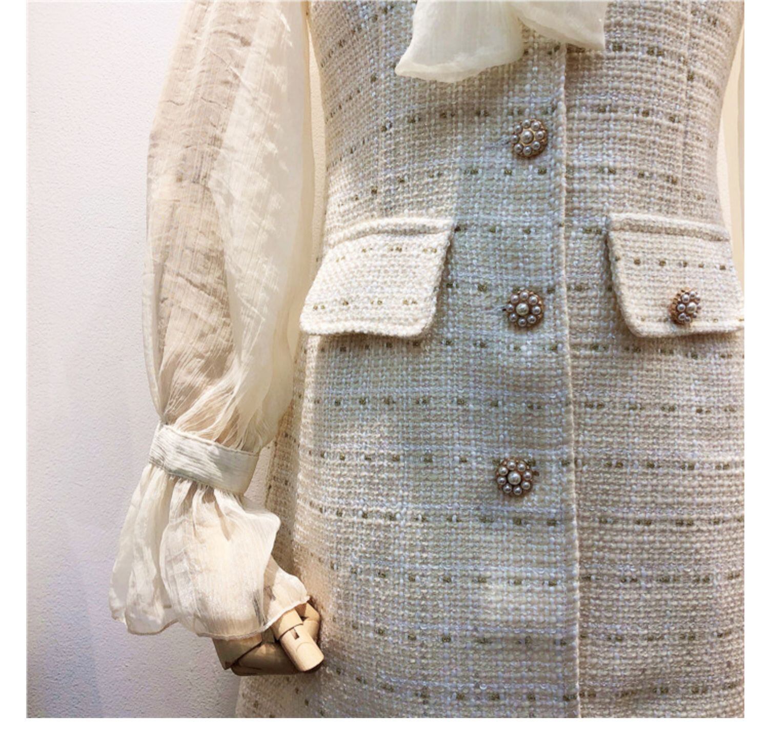 ツィードラインカラーシングルブレストツーピース ドレス 9/19 秋冬 オータム ウインター ナチュラル mi4674940423556