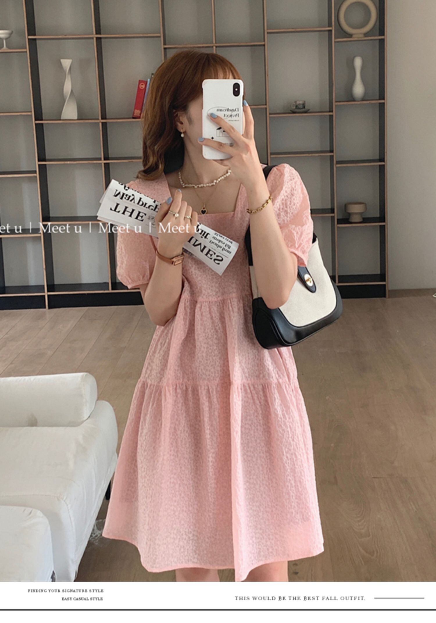 サマースリーブスカート 半袖ドレス ショート ピンク レッド ハーフスリーブ 夏物 スクウェア 9/19 秋冬 オータム ウインター ナチュラル mi4614332830367