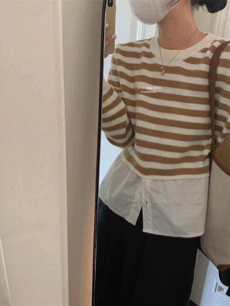 オータムラウンドネックプルオーバー トップス スタイルストライプツーピース ロング 秋物 Oネック 9/19 秋冬 オータム ウインター ナチュラル mi4660136791163