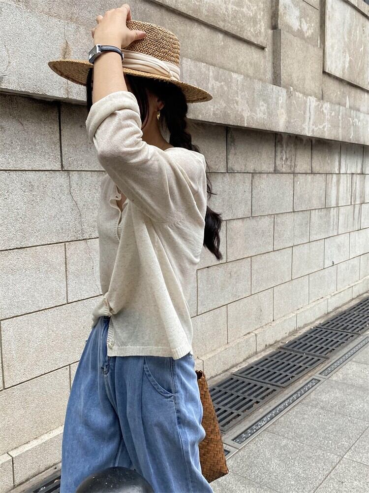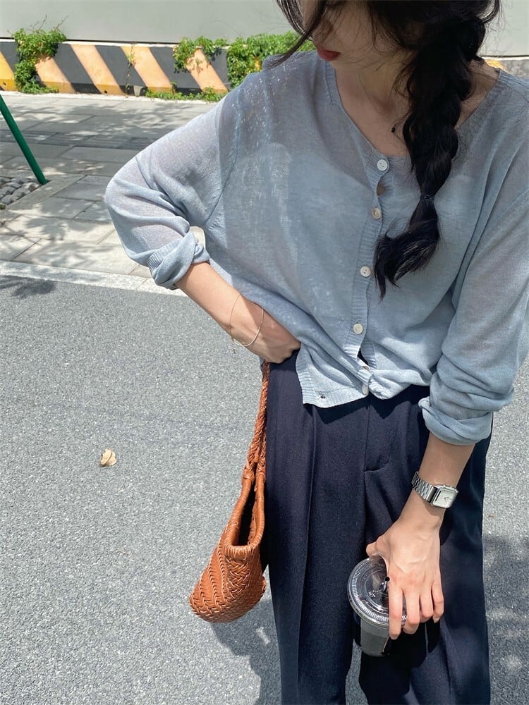 サマーラウンドネック薄手ニットカーディガン ロング 夏物 Oネック 9/19 秋冬 オータム ウインター ナチュラル mi4669011746986