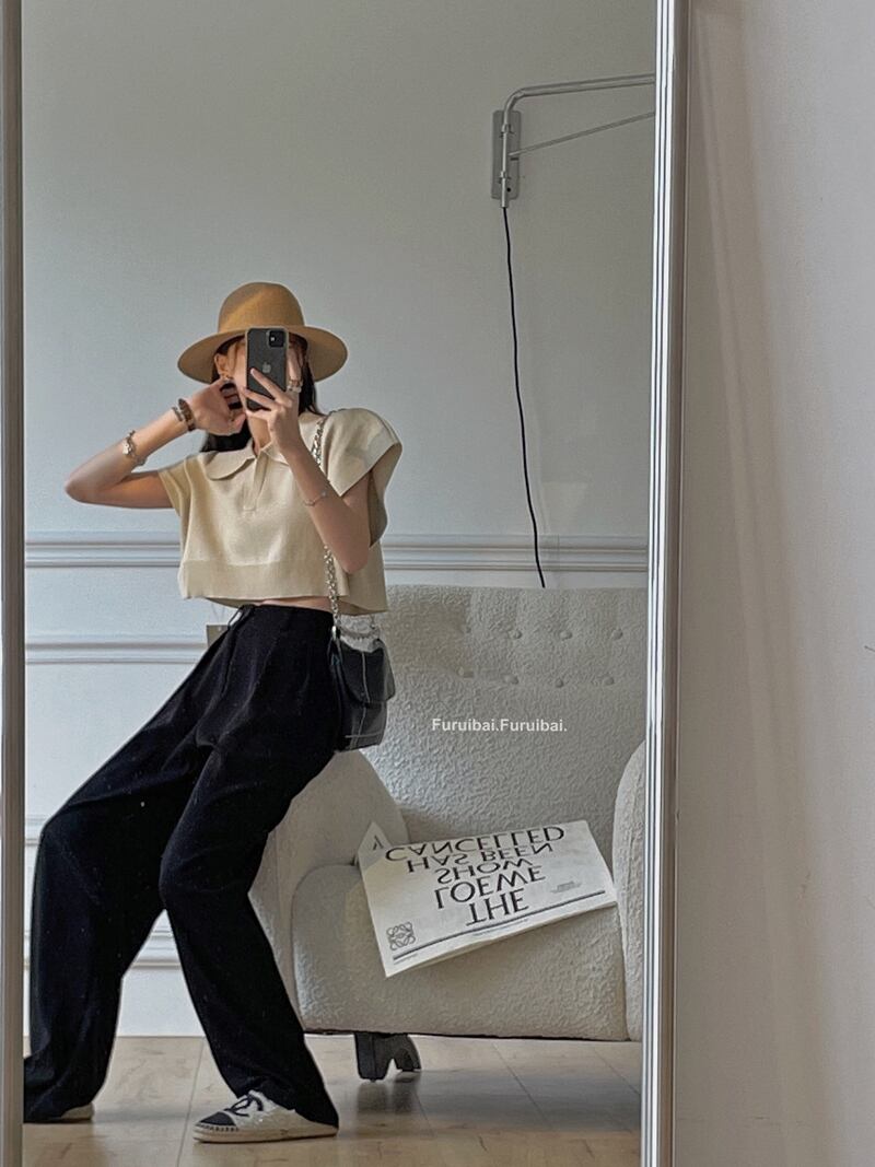 カラーニットセーター オータムレッドルーズ薄手ショートTシャツ トップス 秋物 10/5 秋冬 オータム ウインター ナチュラル mi4691701943992