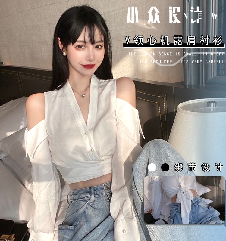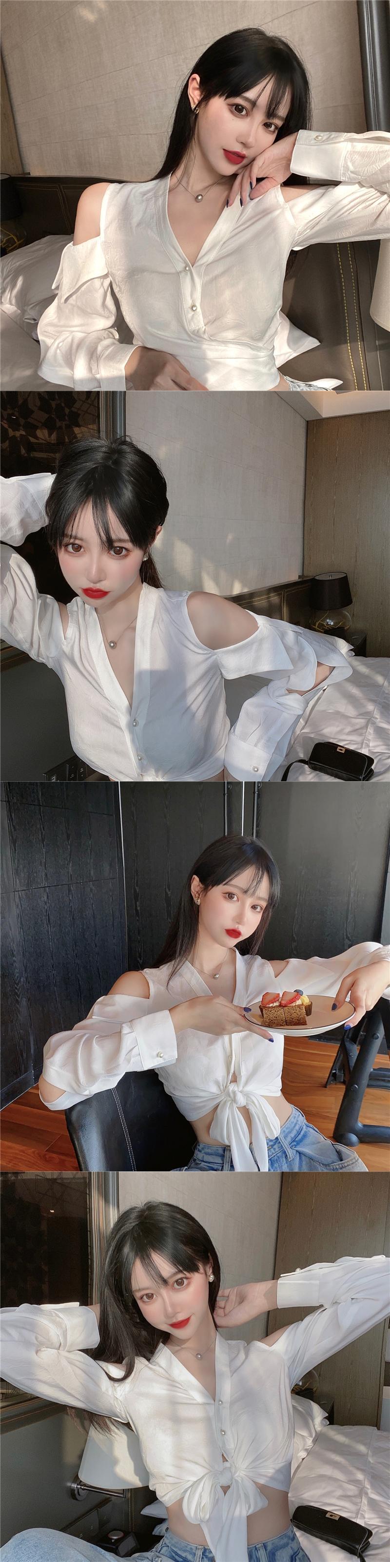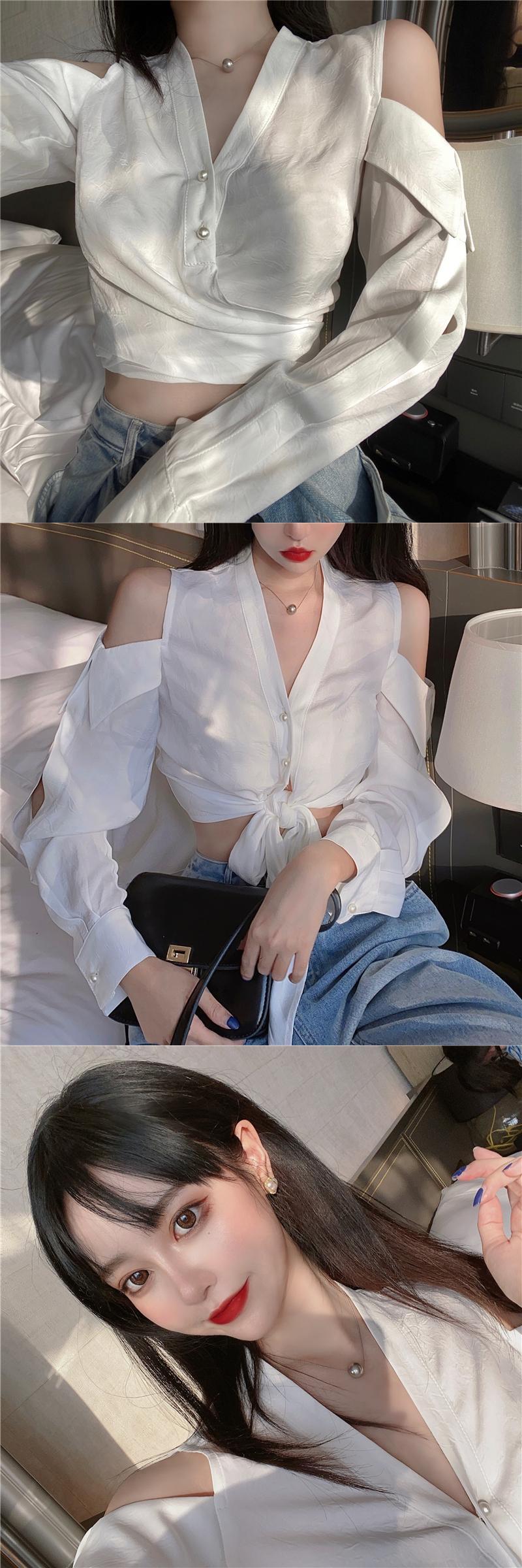 ウェストショートトップス オータムホワイトシャツ ロング レース 秋物 レースアップ 10/5 秋冬 オータム ウインター ナチュラル mi4612280411646