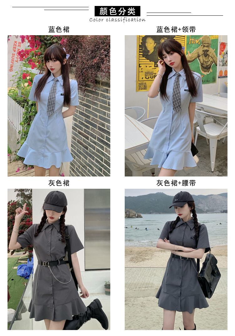 色:青いスカートワンピース,青いスカート+ネクタイ,グレーのスカートのワンピース,グレーのスカート+ベルト