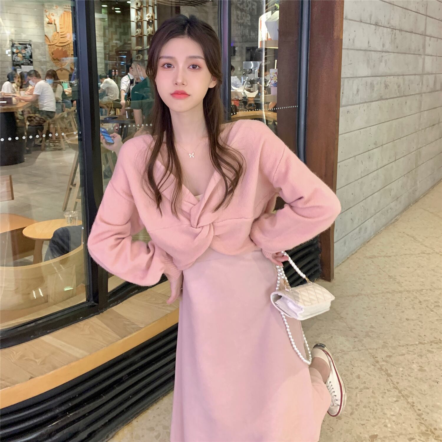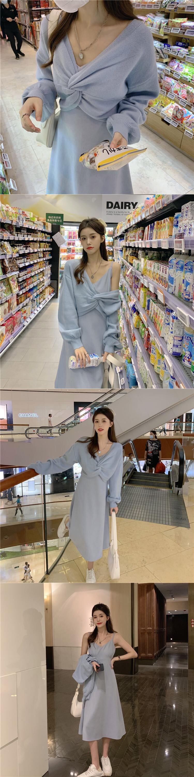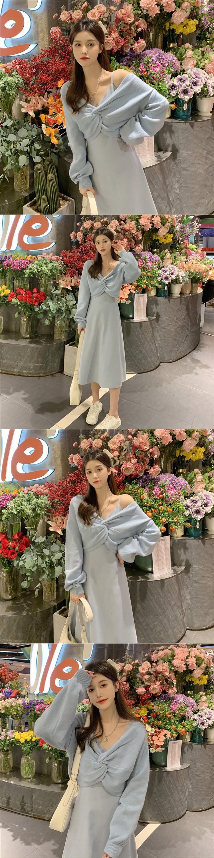 色:青いセーターワンピース,青い服,Ceeカラードレス,ワンピースアプリコットセーター,ピンクのセーターワンピース,ピンクのサスペンダードレス