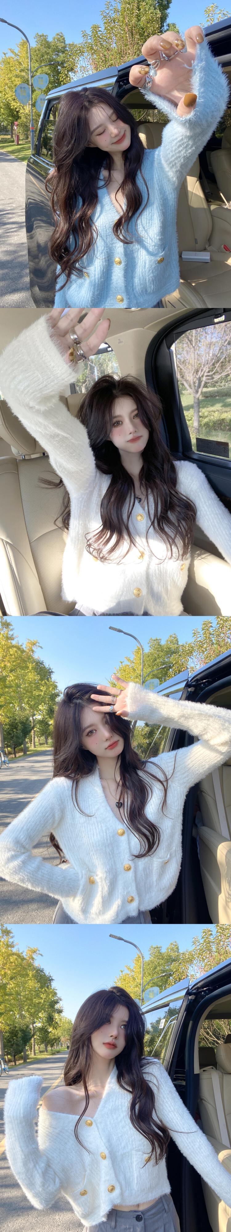 ブルーショートセーター オータムVネックカーディガンコート ニットトップス ロング 秋物 10/5 秋冬 オータム ウインター ナチュラル mi4629610447222