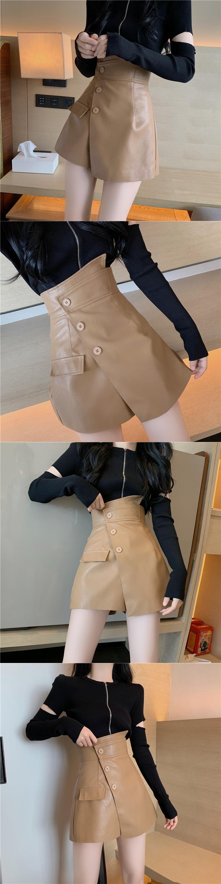 ハイウェストウェストスカート オータムスタイルブラックレザー薄手スリムショートパンツ 秋物 10/5 秋冬 オータム ウインター ナチュラル mi4672980235818