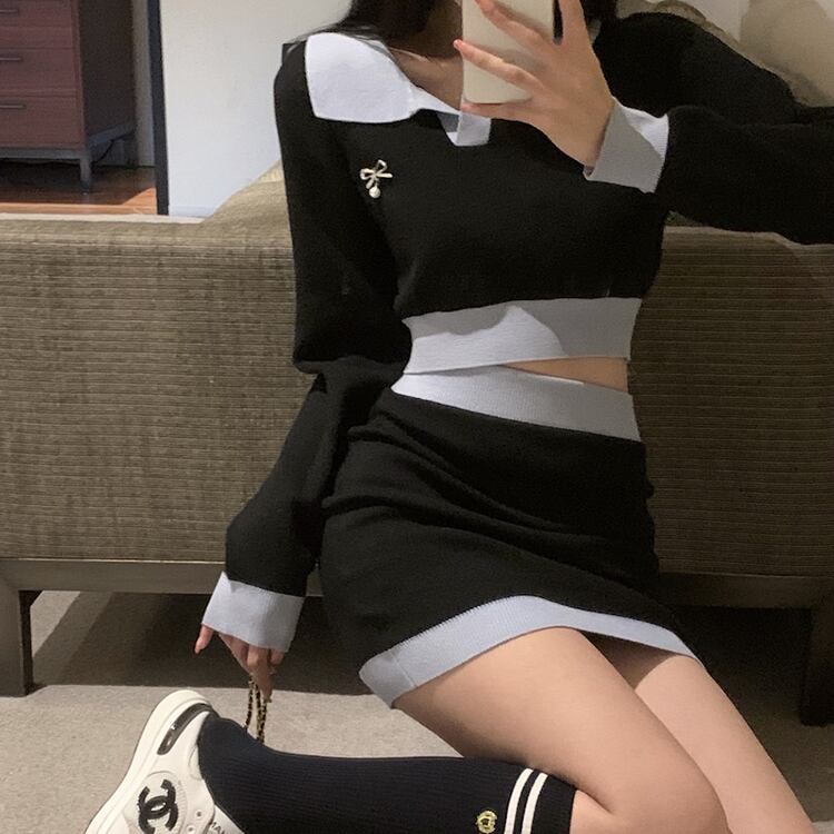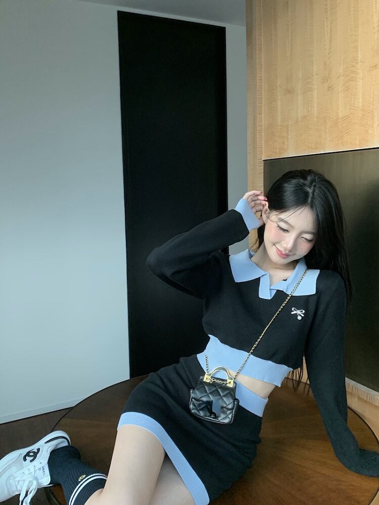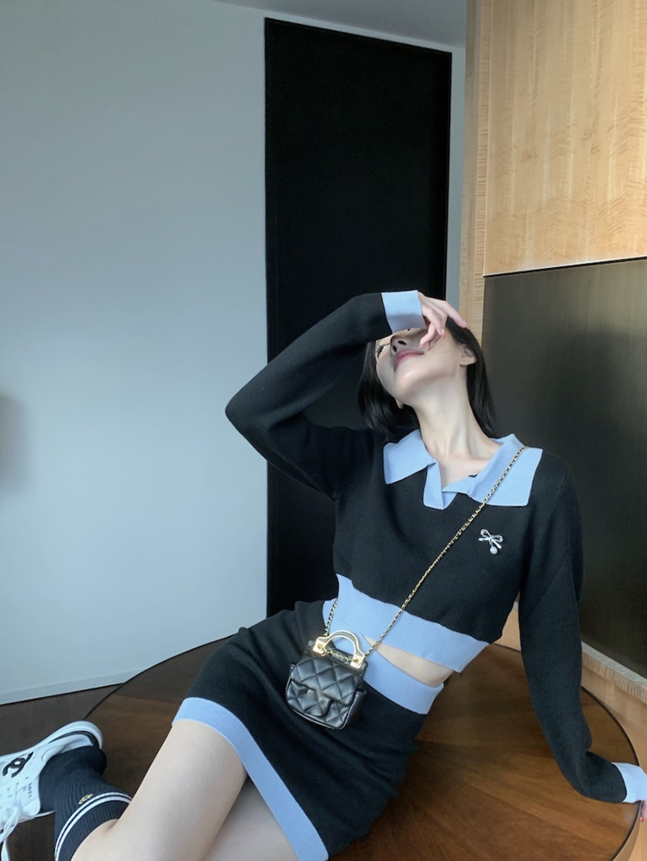 ブルーニットセーター オータムショートスリムフィットトップス ロング 秋物 10/5 秋冬 オータム ウインター ナチュラル mi4649952246957